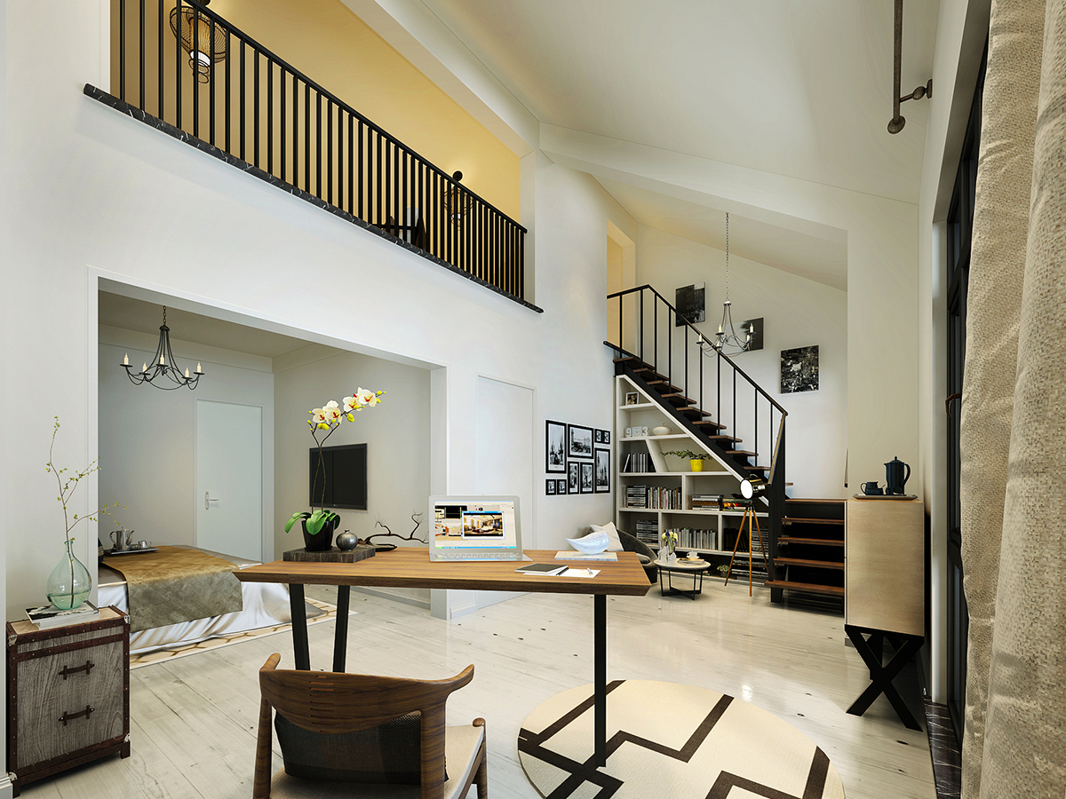 本案業主為年輕人,不喜歡過于復雜的家具,裝修風格以簡潔大方為主,整體色調上采用淺色調,使整個空間感覺更加明亮。業主居家辦公時間較多,在頂層臥室增加書房功能。