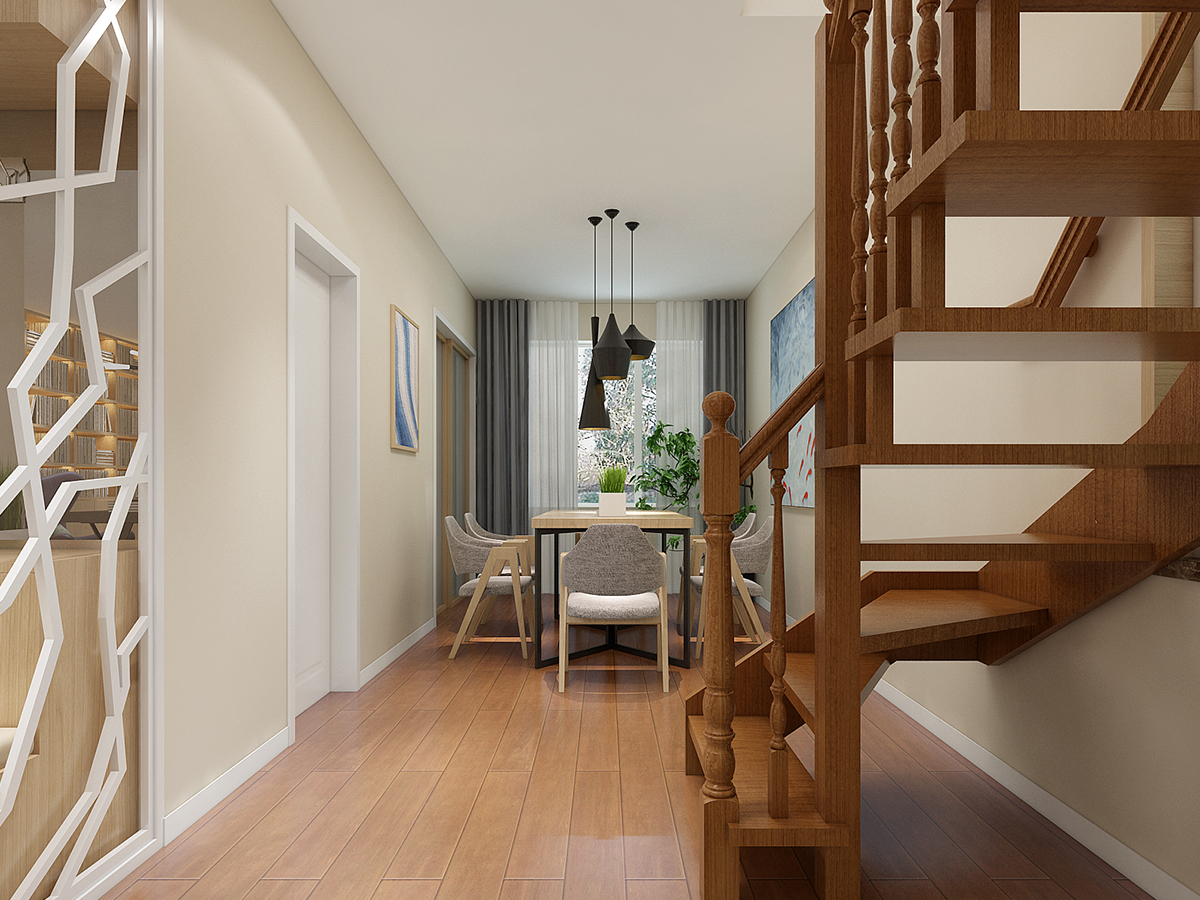 此戶型采用簡約的現代設計風格,因為原戶型除了外墻沒有格局布置,布局需要全部重新設計,在結構上進行改動,加建二層打造復式結構。后期在家具、配飾上做了精心的布置。客廳地面選用米黃色淺色玻化磚,讓居室現得干凈利落。墻面用筒燈的燈光渲染,給人一種朦朧的意境美。尤其是電視背景墻和掛畫,體現了現代低調的風格。整體風格莊重而不失溫馨。