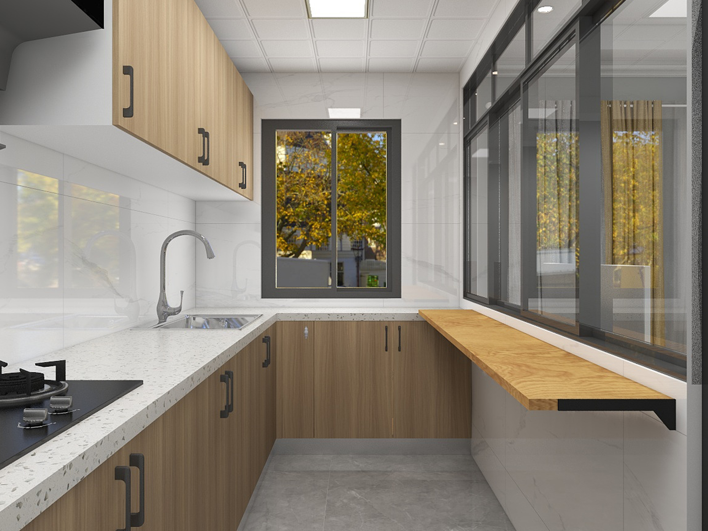 忙了的一天回到家后,開放的廚房,放寬視野的尺寸。做飯的時候也能交流一天的見聞。