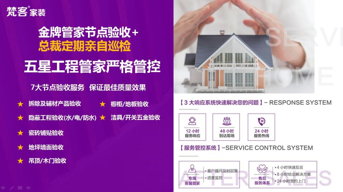 梵客家裝真正為用戶提供一站式家裝解決方案,同時(shí)業(yè)內(nèi)首創(chuàng)提出第八代人性化拎包整裝理念,主推拎包整裝輕奢版整裝產(chǎn)品和智尊版整裝產(chǎn)品,引領(lǐng)整裝發(fā)展潮流。