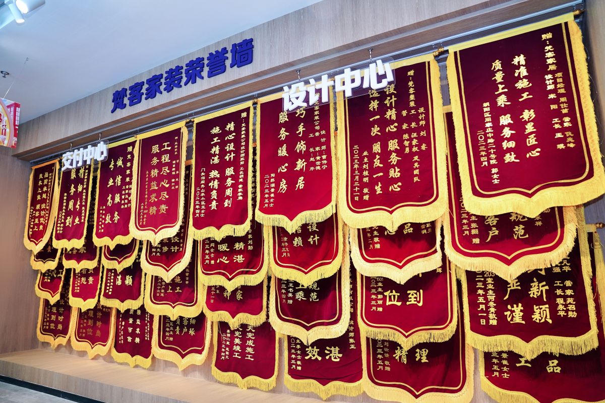已經(jīng)裝修完的業(yè)主朋友,也紛紛在這一天送上錦旗,對梵客的設(shè)計、施工、服務(wù)大加贊賞,這更激勵著梵客人腳踏實、盡心盡職,以匠心設(shè)計、精湛施工服務(wù)好每位客戶。